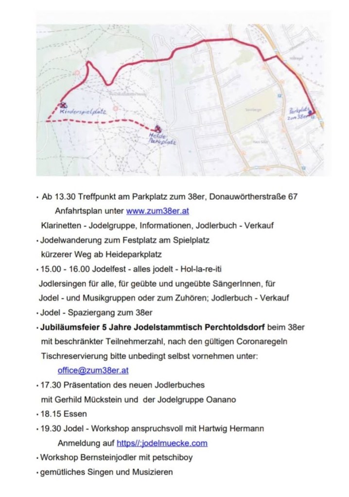 Unser Jodelfest findet am Samstag, 3. Juli auf der Perchtoldsdorfer Heide und beim 38er statt.
